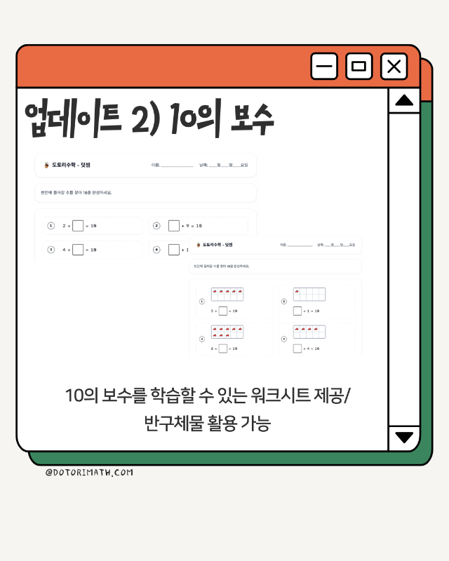 학습전략으로 반구체물을 제공하여, 학생들이 직접 반구체물을 세어가며 10의 보수 쌍을 학습합니다.