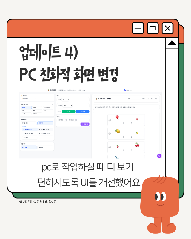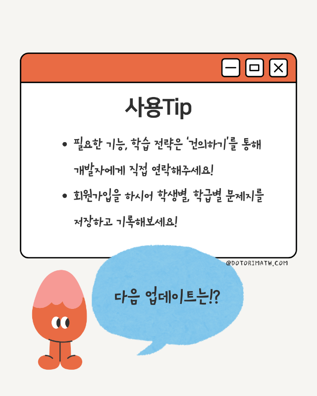 안녕하세요. 도토리수학 업데이트 소식입니다.